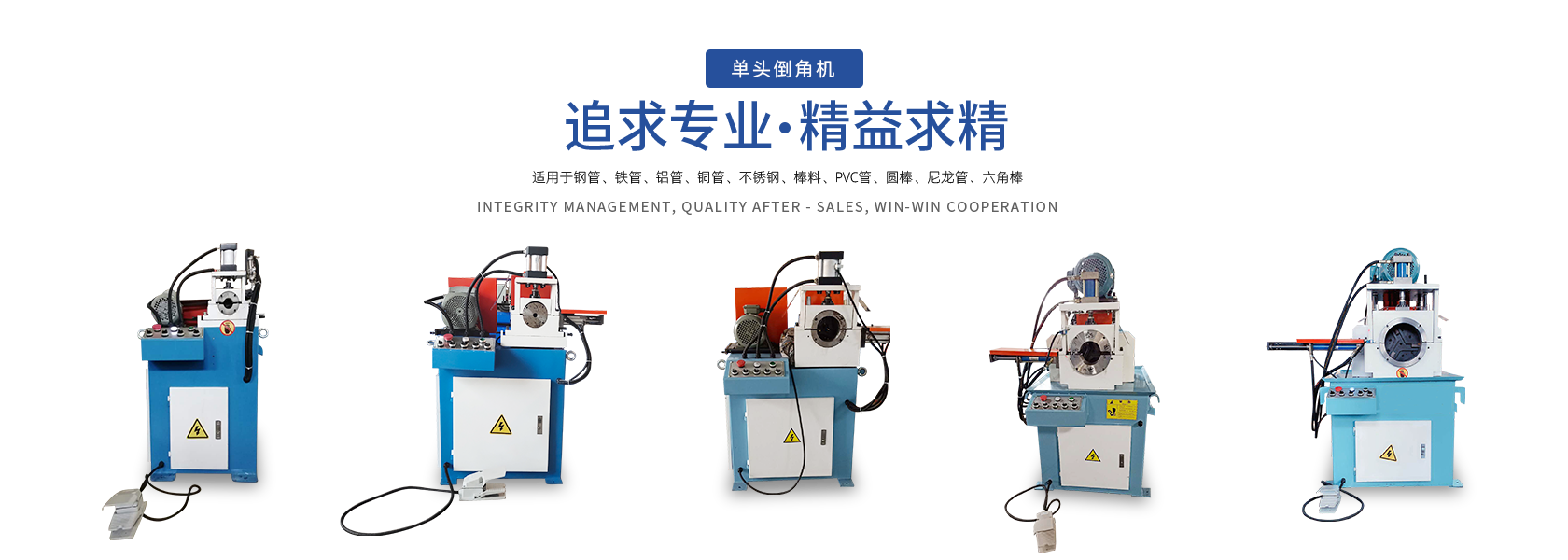 公司目前專注于研發(fā)、制造、生產(chǎn)各類優(yōu)質(zhì)全自動倒角機,現(xiàn)開發(fā)生產(chǎn)的主要產(chǎn)品有:精密雙頭倒角機、氣動雙頭倒角機、液壓雙頭倒角機、金屬圓管圓棒倒角機、端面加工倒角機以及單頭液壓倒角機等等。為汽車、摩托車、體育健身器材、鋼管家具、旅游休閑用品、水暖衛(wèi)浴等行業(yè)的金屬管制品的加工提供了完美的機械設備。